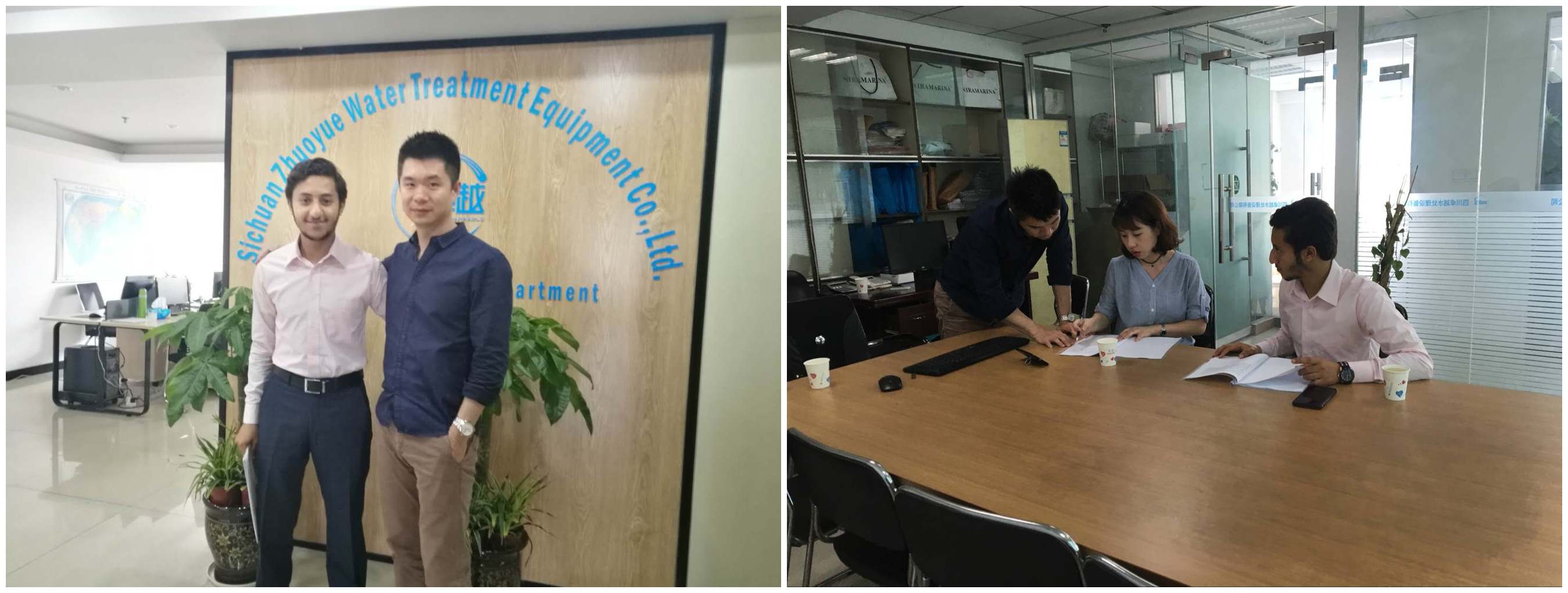 2個月以前,沙特阿拉伯與我公司取得聯(lián)系,了解到客戶需要在沙特開設(shè)一個制藥工廠,預(yù)在我公司采購一臺制藥純化水設(shè)備和相關(guān)制藥設(shè)備,通過2個月的初步技術(shù)交流,客戶決定派技術(shù)人員來成都進行實地考察。