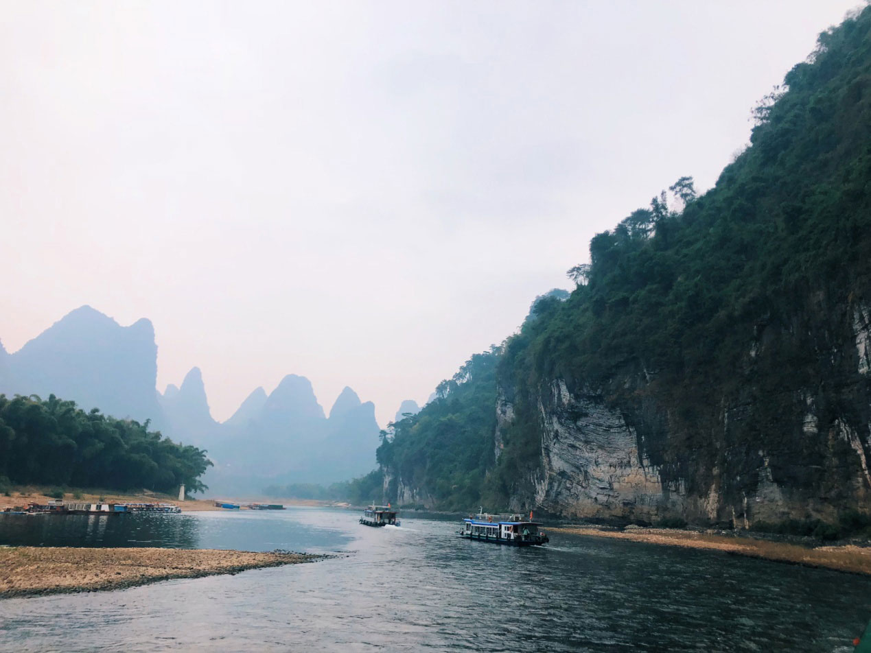 來(lái)到漓江,蒙蒙細(xì)雨早已不見(jiàn)蹤影,取而代之的是溫暖的陽(yáng)光,仿佛為了歡迎遠(yuǎn)道而來(lái)的我們。