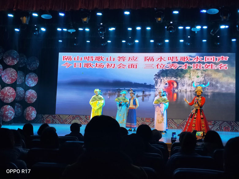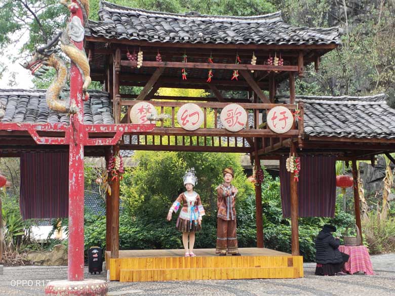 參觀以壯族歌仙劉三姐命名的【劉三姐大觀園】,是展示劉三姐生活、故事的實(shí)景地,主要由廣西民族風(fēng)情和劉三姐文化兩大主題游覽項(xiàng)目組成。 景區(qū)的主要景點(diǎn)有金蟾對(duì)歌臺(tái)、夢(mèng)幻歌圩、侗家歌臺(tái)、劉三姐與阿牛哥定情誓約的百年古榕,還有風(fēng)雨長(zhǎng)廊、壯寨干欄、瑤寨木樓、侗族鼓樓、苗族吊角樓等各類民族建筑及廣西各種民族服飾。