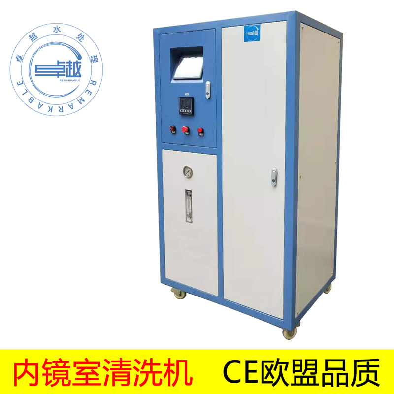 ZYNJQX內鏡消毒清洗純化水機是一款依據中華人民共和國衛(wèi)生行業(yè)標準 WS507-2016(軟式內鏡清洗消毒技術規(guī)范)要求的,設計精巧、低能耗、全自動控制無須人照看的消毒清洗純化水制取系統(tǒng)。采用雙膜法[RO+UF+滅菌裝置]分離純化、除熱源技術,去除水中污染物質和細菌達99.6%。此產品采用納米級的過濾膜將符合GB5749的自來水純化為符合醫(yī)院內鏡消毒清洗用的純化水,并采用雙波長紫外消解儀進行滅菌或臭氧消毒,能為廣大胃鏡科室客戶解決內窺鏡消毒清洗用水,細菌總數(shù)<10cfu/100ml。