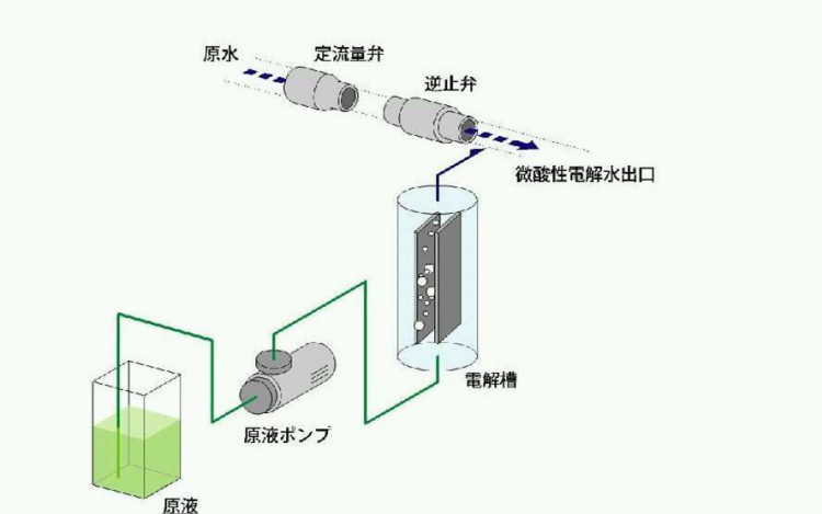 強(qiáng)酸性電解水采用卓越ZY-LAEB系列電解槽、通過(guò)低電壓電解方式制成的。在陽(yáng)極中2HCl一H+ +Cl-,生成的Cl+又與HO-反應(yīng)生成了次氯酸(HOCI)和鹽酸(HCl)。在原水的緩沖下,pH變?yōu)?.0 - 6.5,有效氯濃度為10-30ppm(只有強(qiáng)酸水的1/4以下),氯離子(Cl-)濃度低是這種強(qiáng)酸性電解水的顯著特征。在強(qiáng)酸性電解水的生成過(guò)程中,除了生成有殺菌效果的氯外,不再產(chǎn)生氧或臭氧,不會(huì)生成氯的高次氧化物如HClO2、HClO3、HClO4等,溶存氧、臭氧、氯氧化物等副生成物的濃度較低,綠色環(huán)保;生成的強(qiáng)酸性電解水為無(wú)色透明非粘性液體,含有次氯酸,無(wú)味或是略呈氯臭,其pH值接近7,決定它對(duì)人體的危害更小,對(duì)物體幾乎沒(méi)有腐蝕性。強(qiáng)酸性電解水作用后發(fā)生氧化還原反應(yīng)生成水,原料中不含鹽,使用后即使干燥也不會(huì)因?yàn)辂}的濃縮和結(jié)晶帶來(lái)弊害。