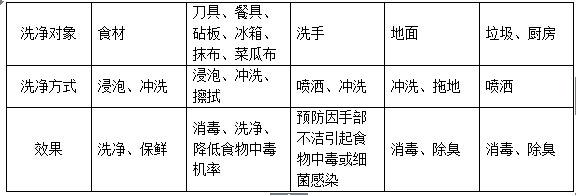 環(huán)境衛(wèi)生的清潔殺菌,例如地面墻壁的清掃干凈可以保持空間的空氣清靜,使用強(qiáng)酸性次亞氯酸水對(duì)于器具的清潔,人員本身的清潔都有效,不會(huì)對(duì)作業(yè)人員造成任何危害。